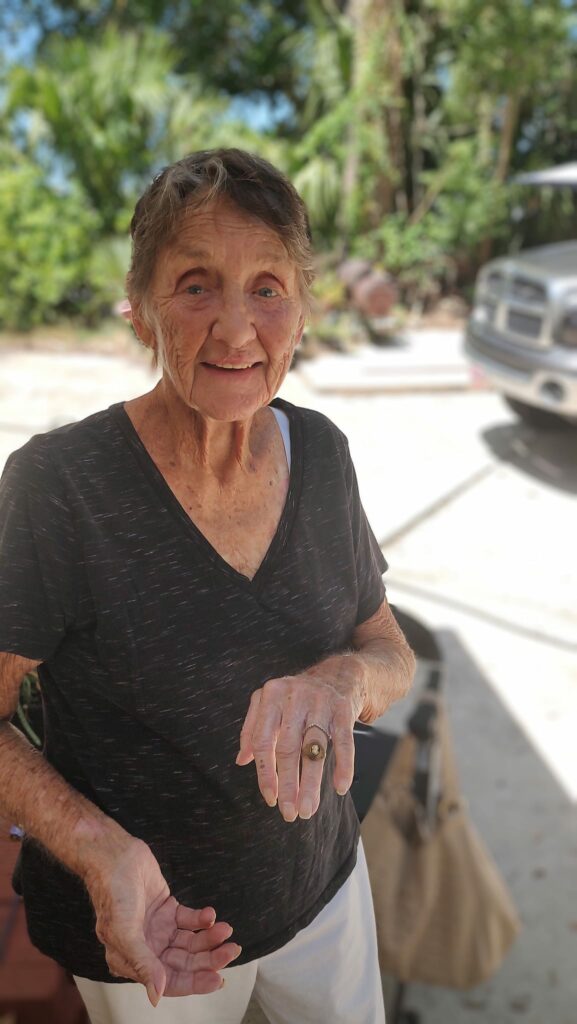 I originally was going to drive down to Sanford last week but the hurricane was threatening our area, so I postponed. This morning, I drove down and returned the ring to Miss Lindsey. She was extremely happy and grateful. She thinks she lost the ring sometime in the late 1960s on a trip to my area to visit her cousin who was playing for the University of Florida’s Football team. She did remember going swimming in the lake but she didn’t realize that the ring was gone until she was home in Sanford and therefore thought it had been lost there.