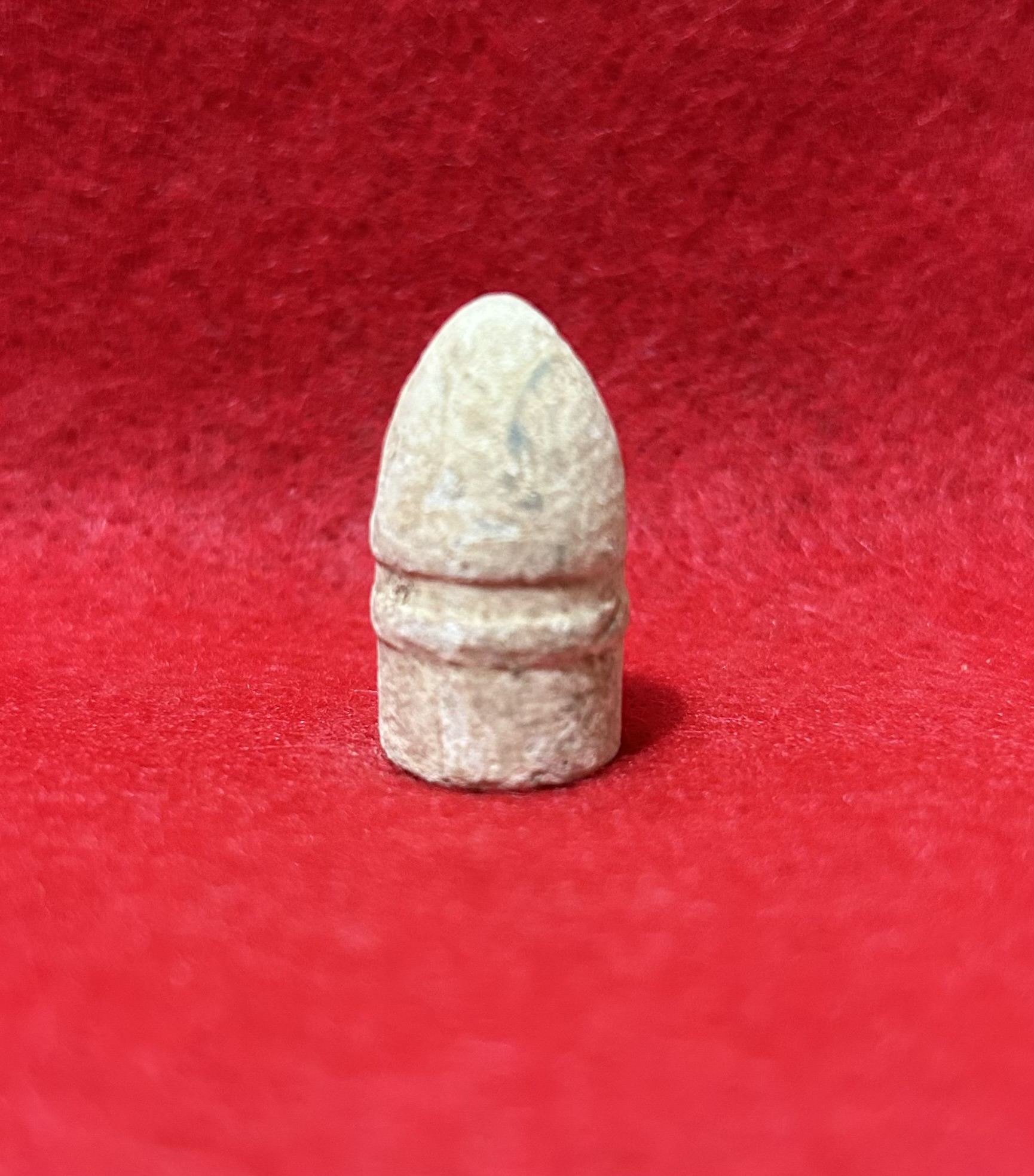 Dug at the battle of Frasier’s Farm this is a beautiful example of a Confederate manufactured bullet .54 Cal.