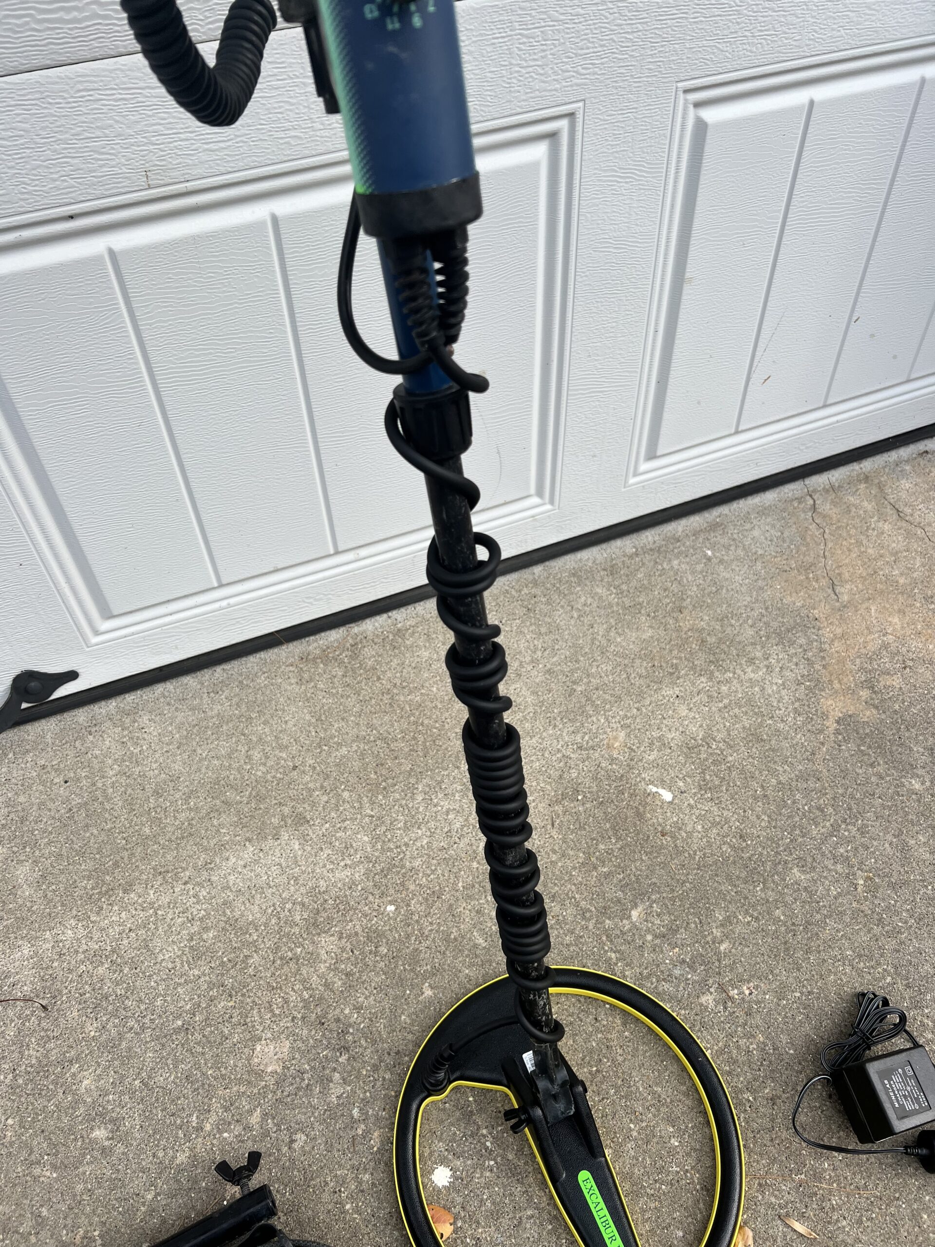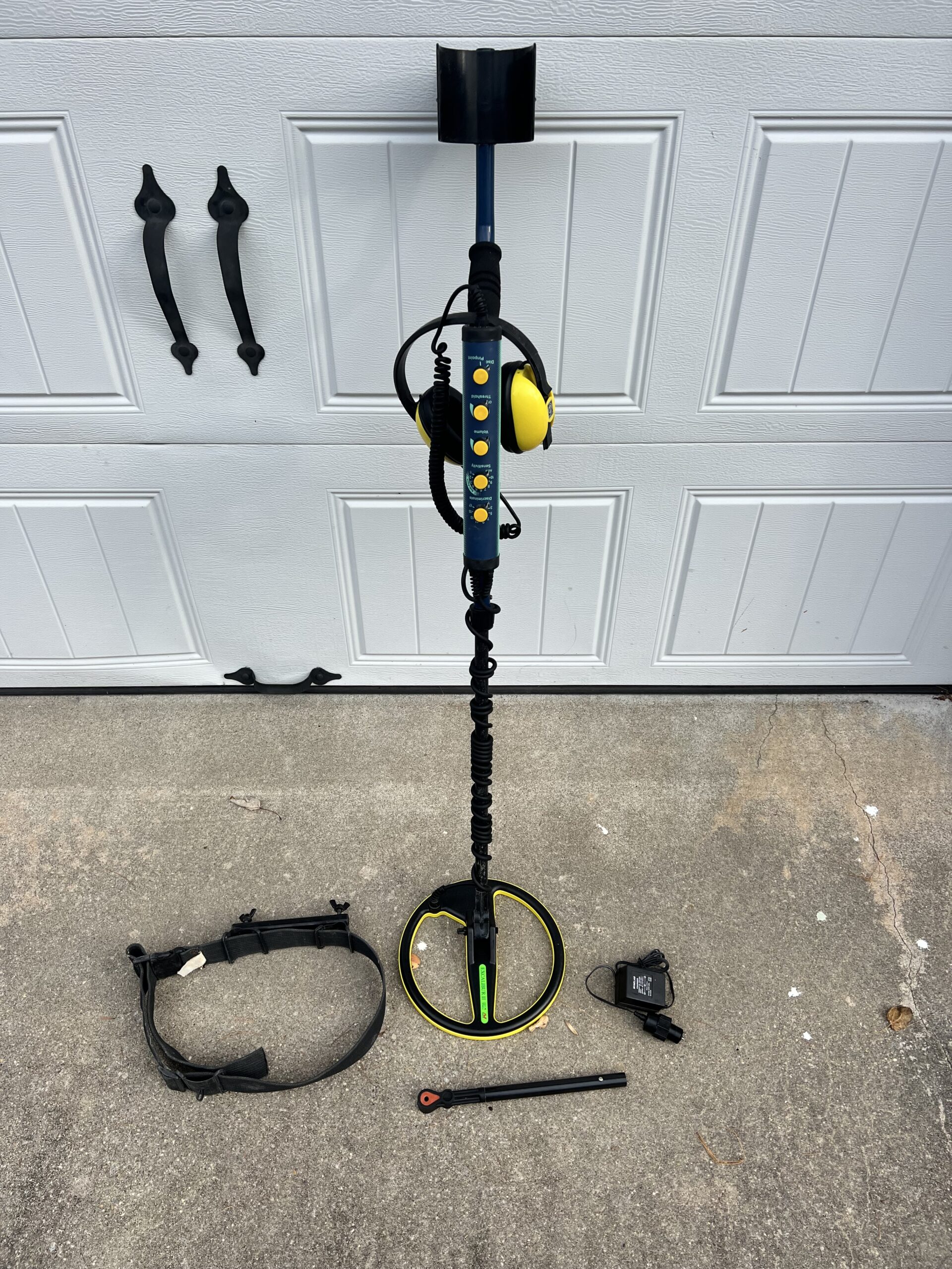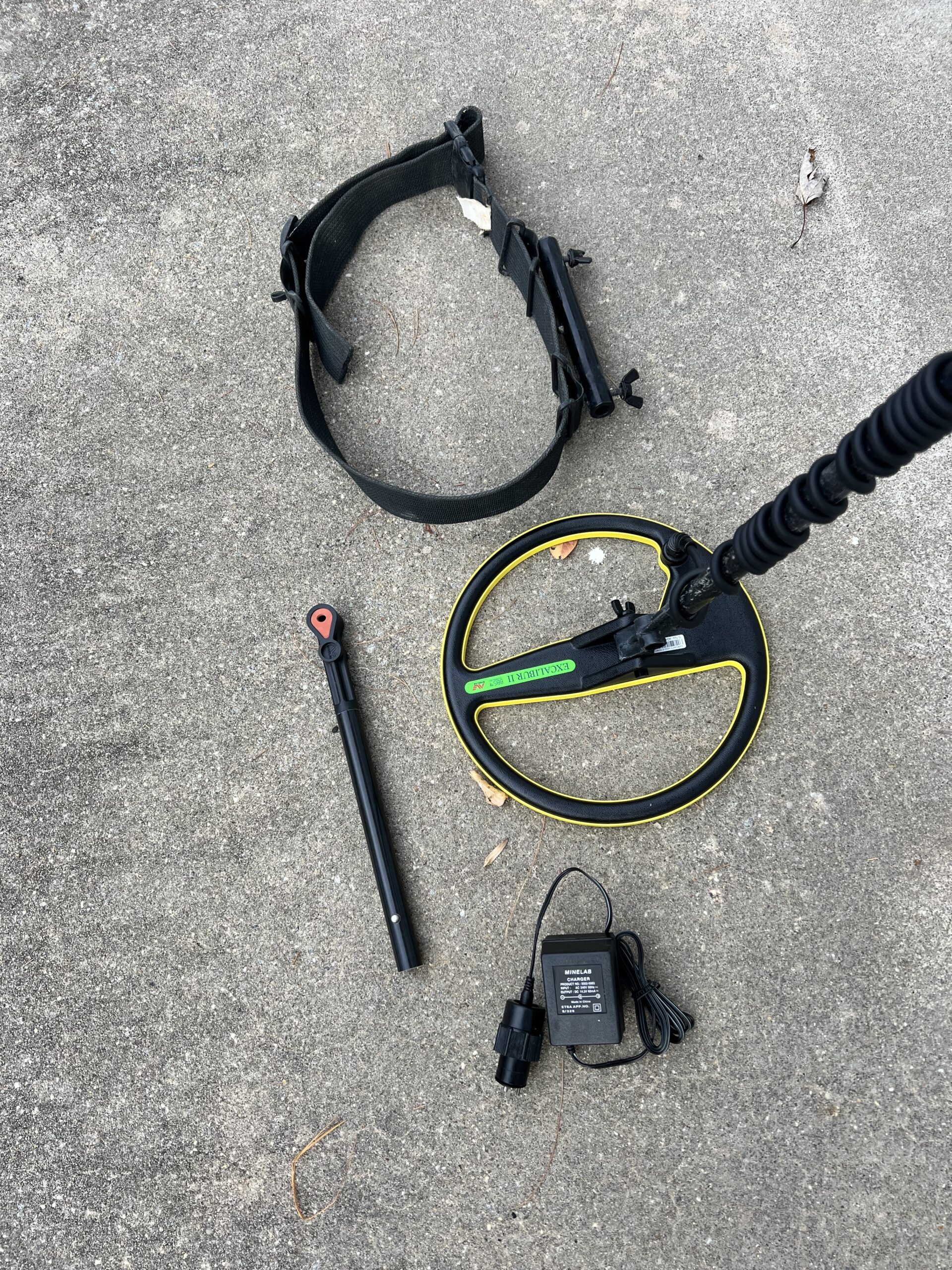 Comes with diving shaft as well as a belt for diving as well. Battery Charger included. This machine is in used condition but has a fresh service from minelab including brand new Anderson knobs and a brand new 10 inch coil. No need to worry about the coil wire for a long time. This machine is ready to go!