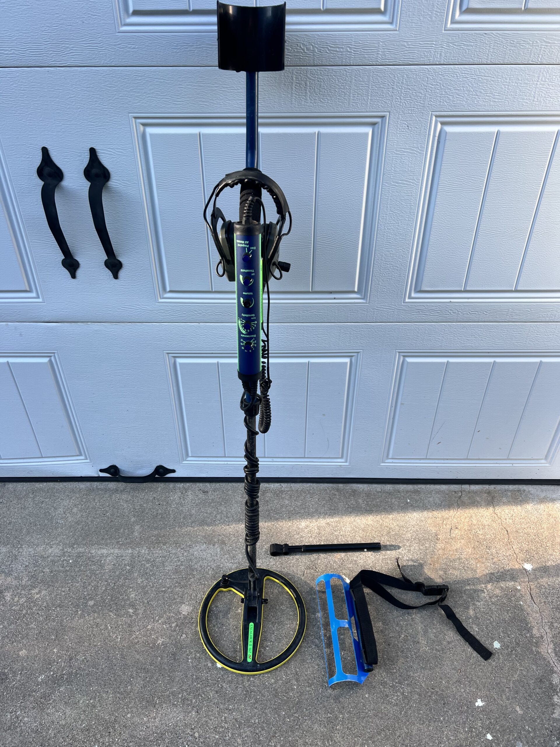 This is a really nice used Minelab Excalibur II. It has upgraded knobs from Anderson Detector Shafts and a set of Grey Ghost Amphibian head phones. This thing is loud! And will sniff out the deepest targets with the 10 inch coil. Also included is a diving belt to back mount the control box along with a diving shaft and charger. Tested and it works as it should. Go out and find some gold today and pay for this unit in one find! Please contact me with any questions